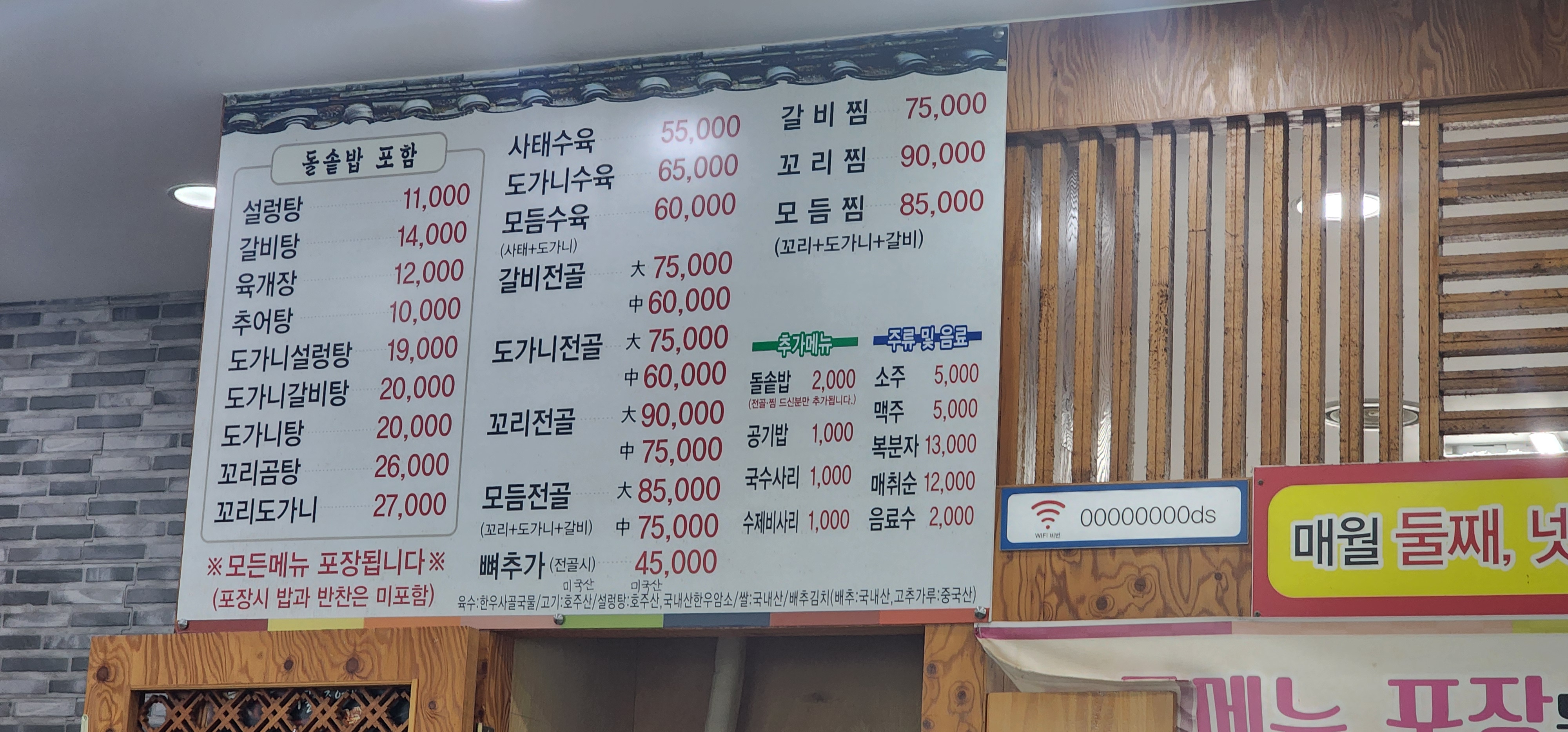 갈비탕, 육개장, 도가니탕 등 다른 메뉴도 눈에 띄었습니다.