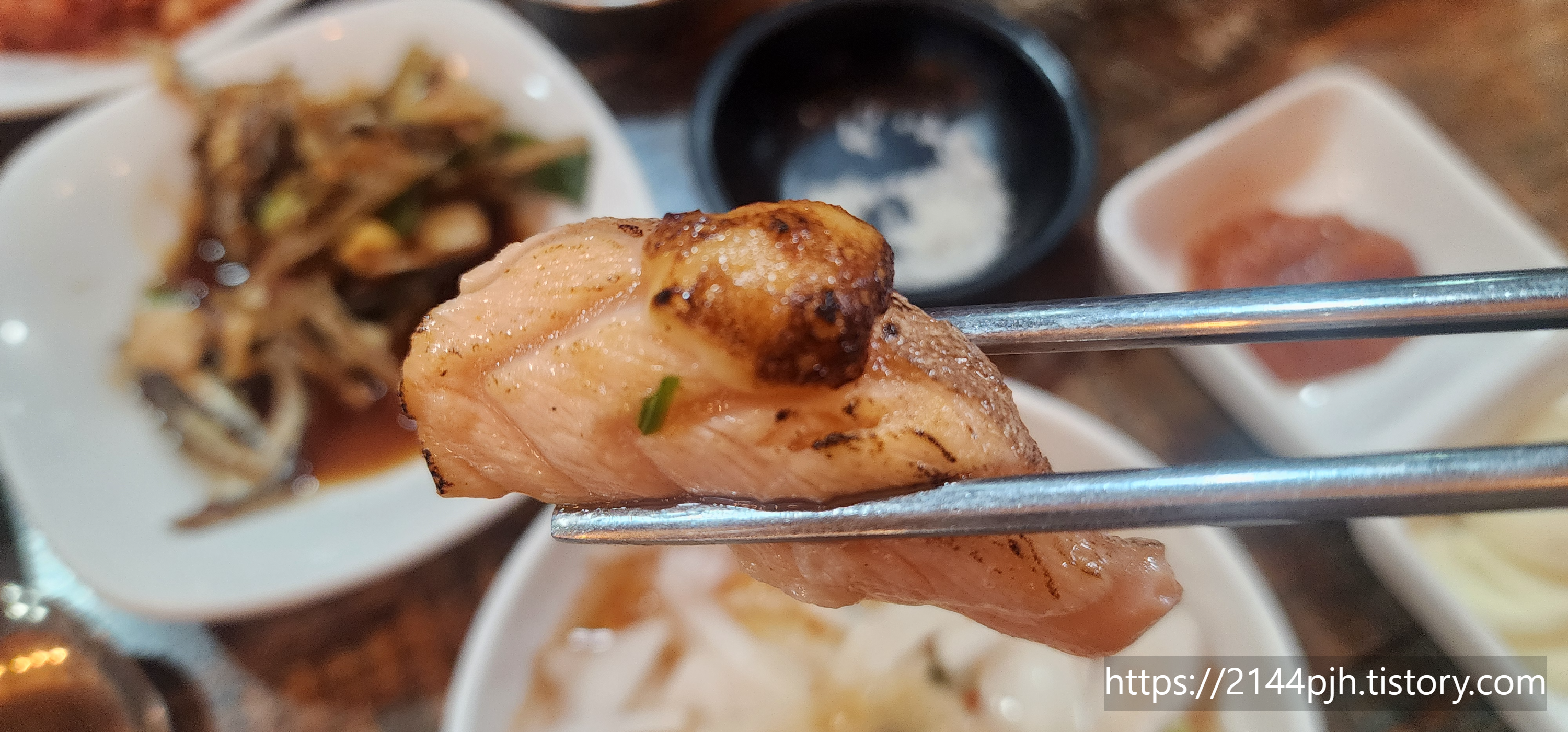 첫 입은 잘 구워진 살치살 한점.
