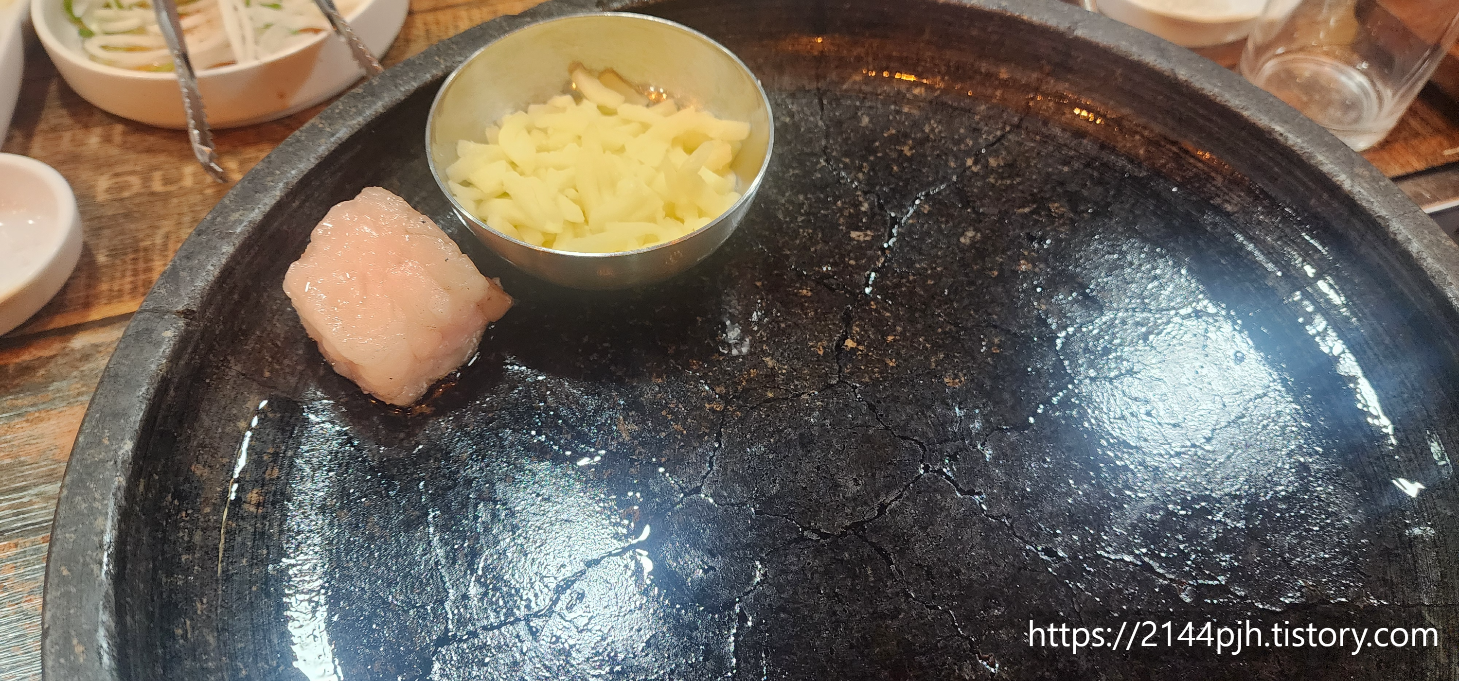 소고기 주문 시 돌판이 나옵니다.
