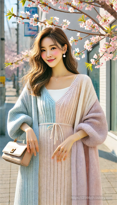 ✅ 니트 원피스 + 가디건 레이어드 – 트렌디하면서도 편안한 조합!