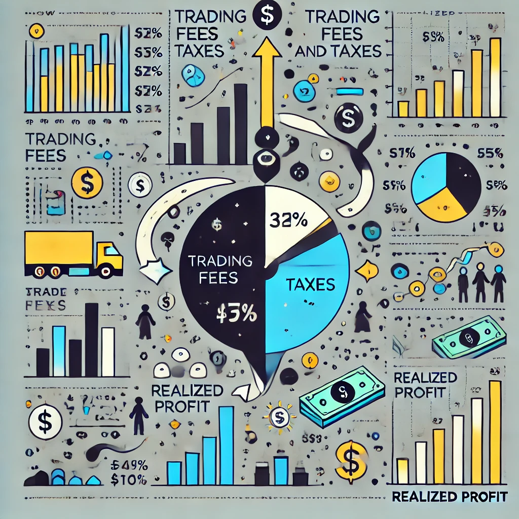 거래 내역에서 세금 및 수수료를 확인하고, 이를 반영한 후 실현 손익을 계산해야 합니다.