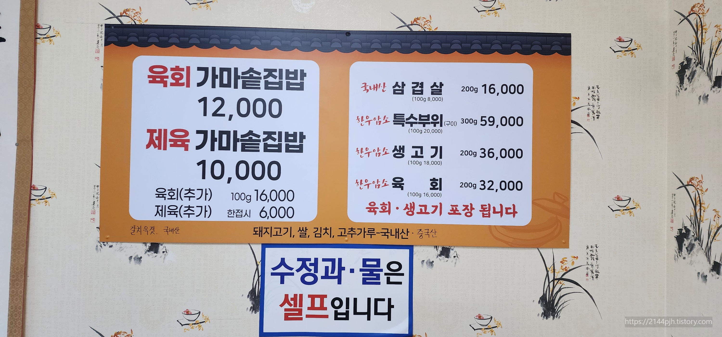 저희는 육회 가마솥집밥 2인분 + 제육볶음(추가) 1접시를 주문했어요. 😊