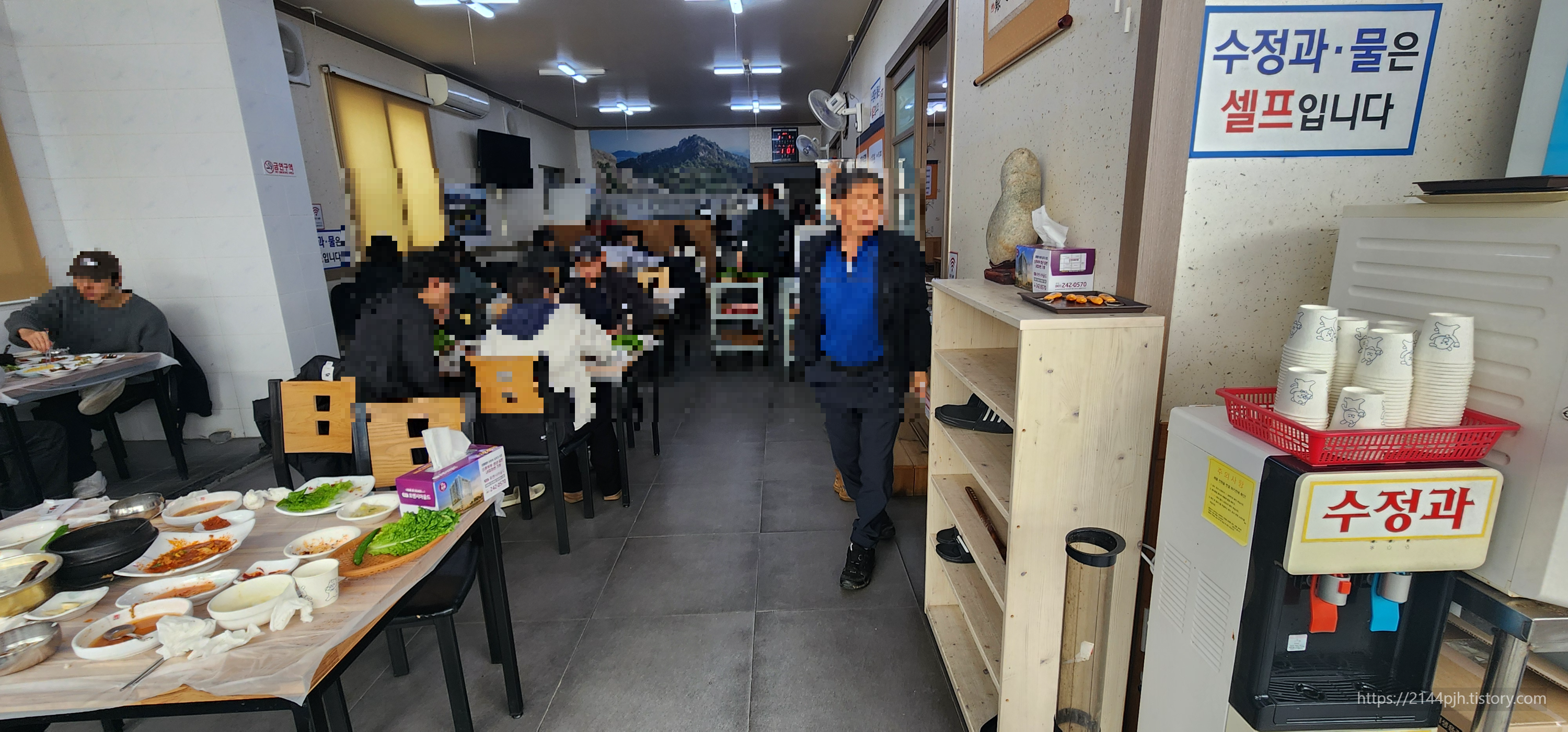엄지가든 내부는 홀과 방으로 나누어져 있어요. 홀이 다 차면 방으로 안내받는데, 저는 입식 테이블에서 먹는 걸 선호해서 늦지 않게 방문했답니다. 전체적으로 깔끔하고 정갈한 분위기라 가족, 친구들과 함께 오기 좋아요.
