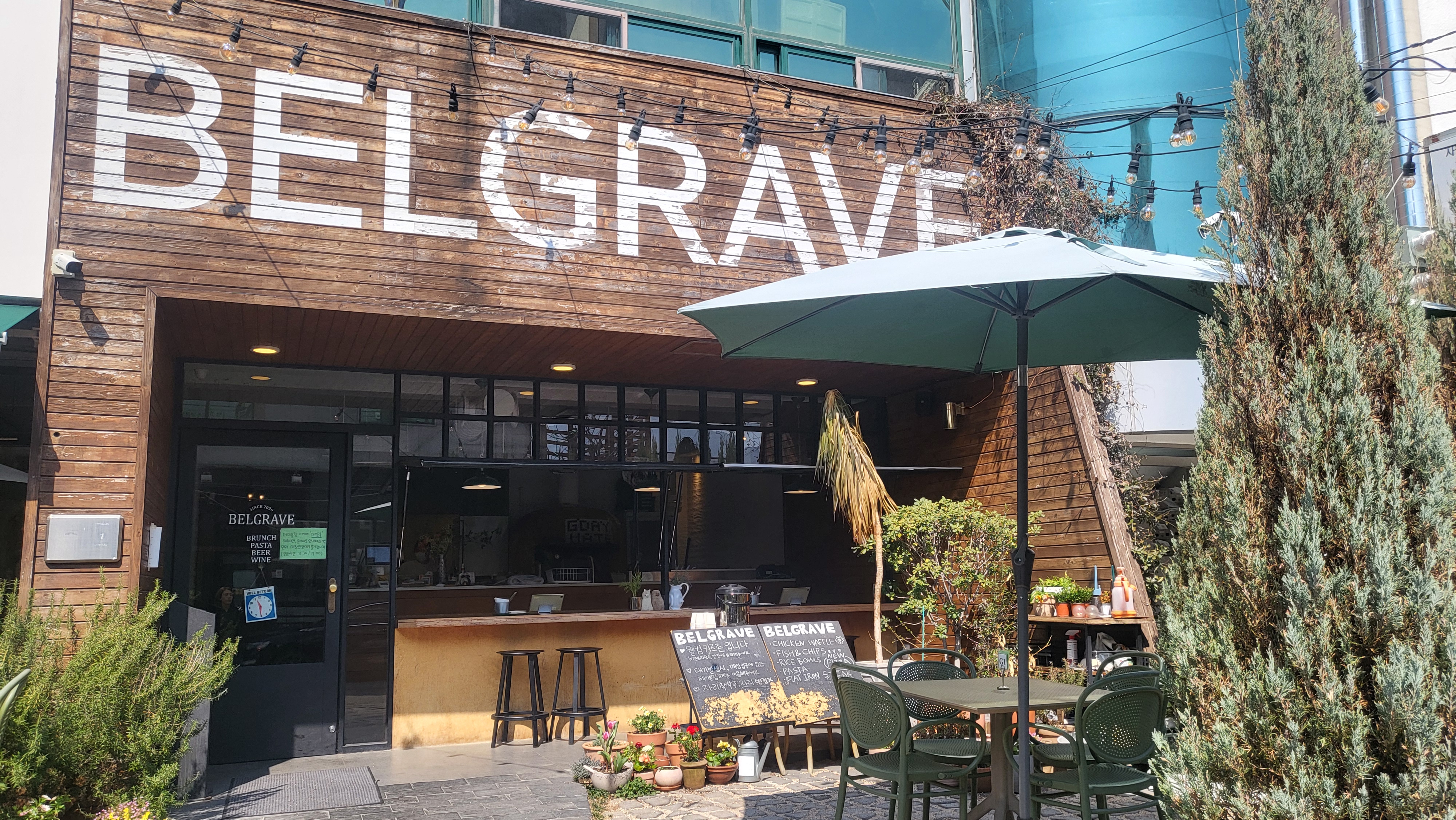 Belgrave는 창원 가로수길에 위치한 호주 가정식 레스토랑으로, 감각적인 인테리어와 아늑한 분위기가 돋보입니다. 오픈 키친 형태로 요리가 만들어지는 과정을 볼 수 있으며, 화덕에서 갓 구운 피자가 특히 유명합니다.