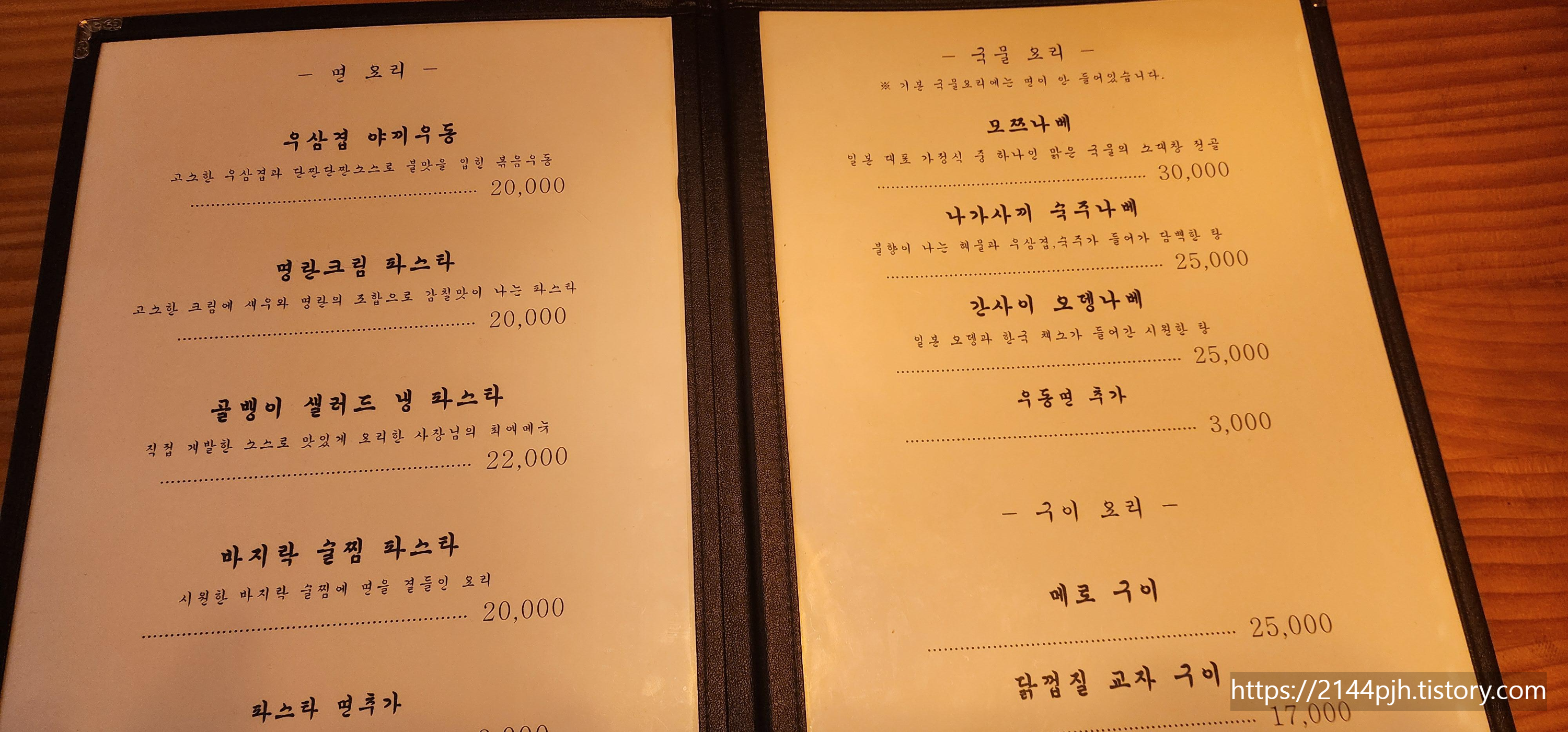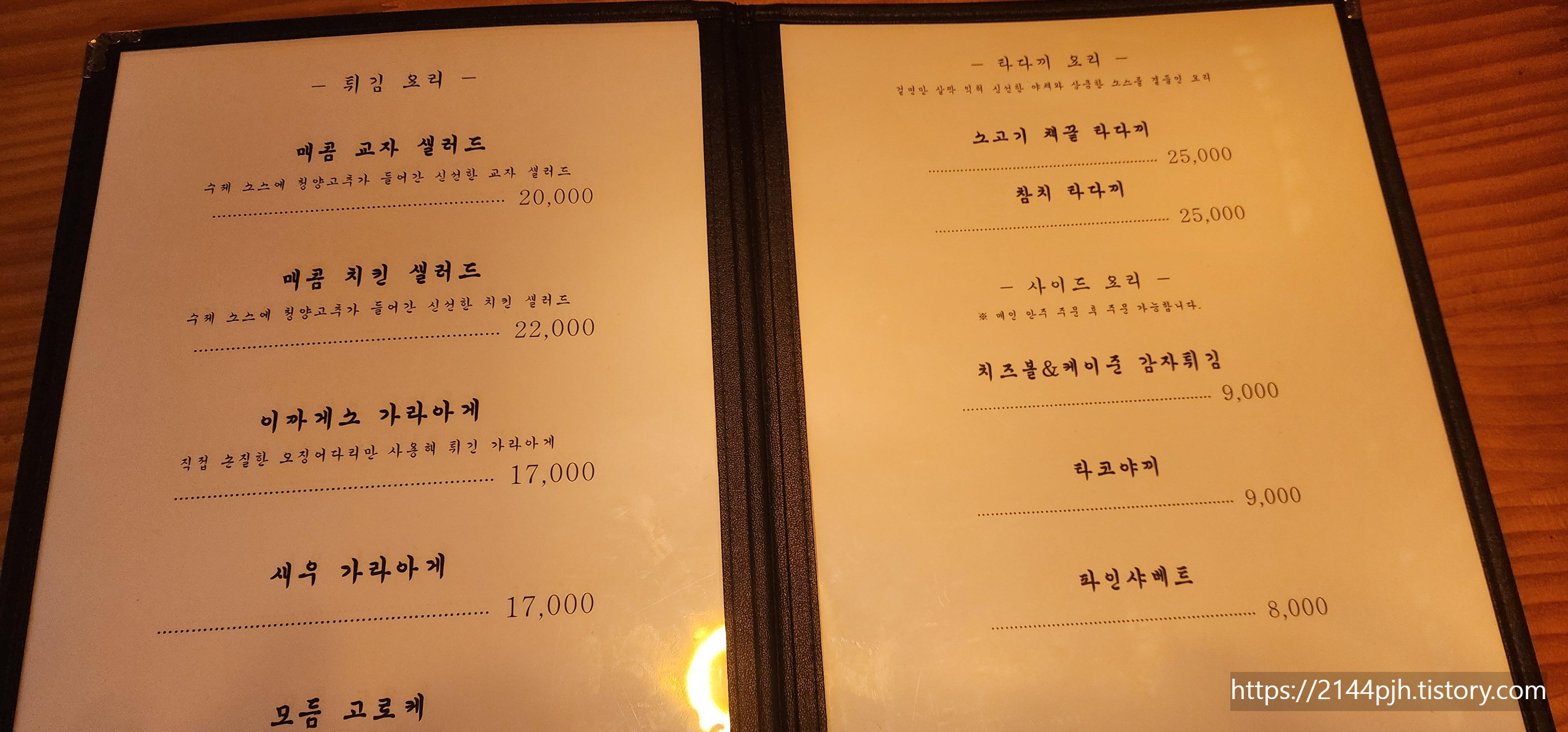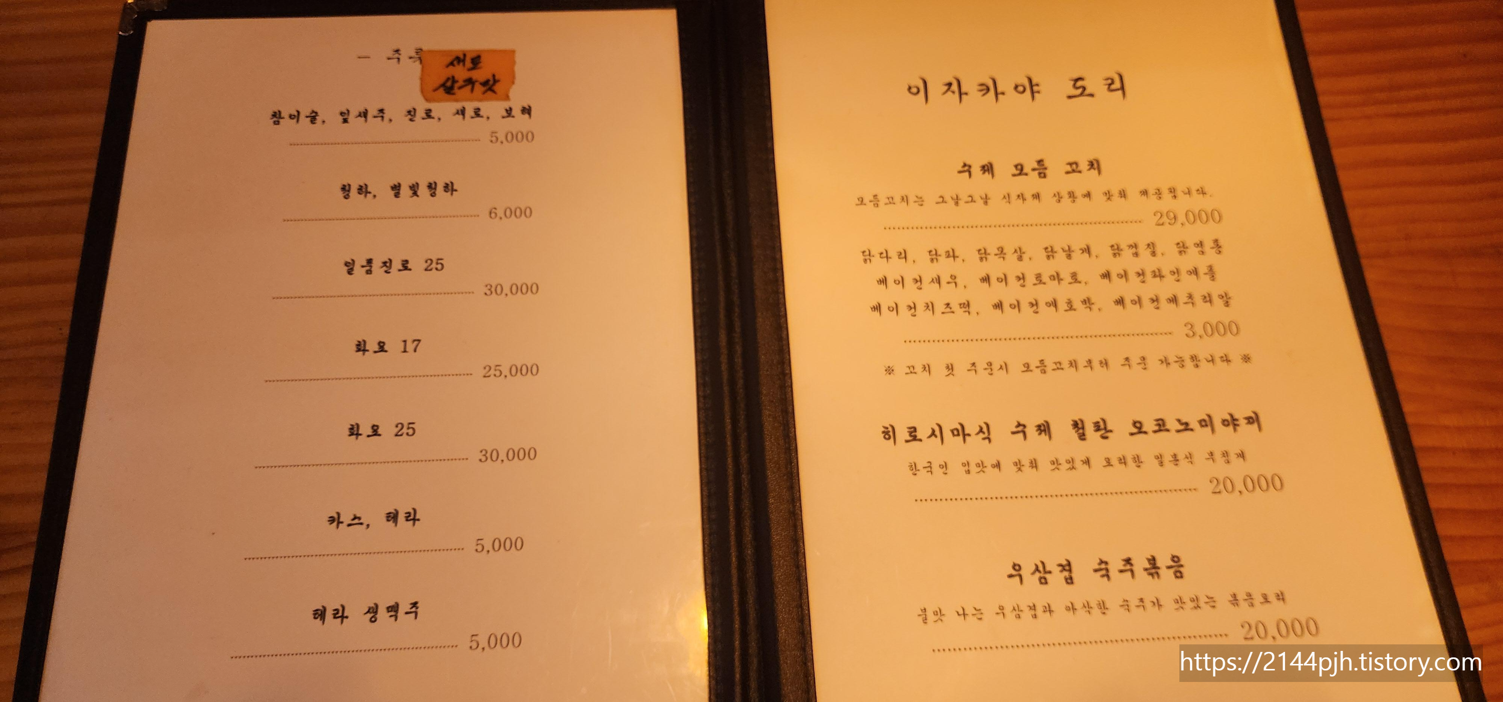 - 영업시간: 평일 17:00~01:00 (라스트 오더 00:00)