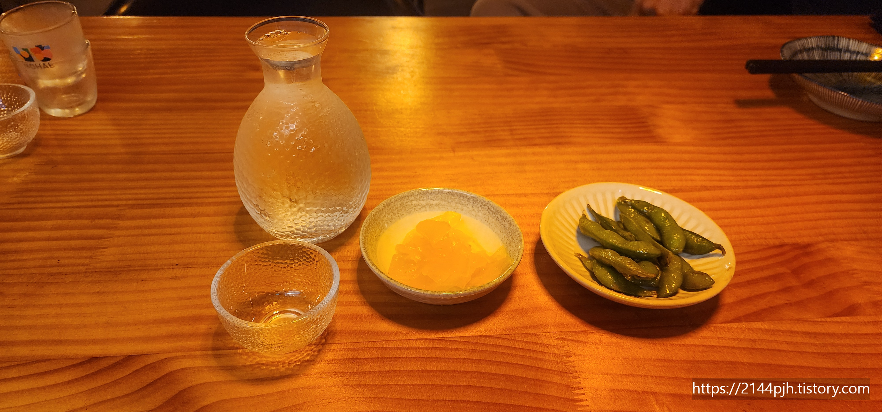 오랜만에 주문한 도쿠리(9,000원)와 함께 나온 유자청 단무지와 완두콩도 별미였어요.