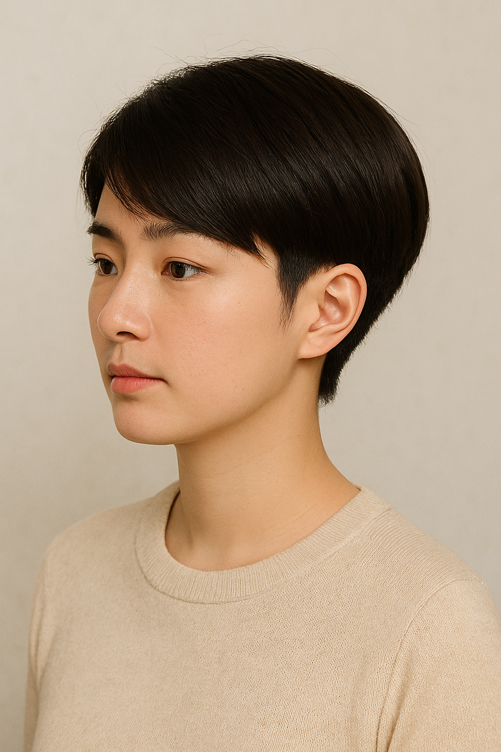 대담하고 세련된 이미지를 원하는 여성들에게 추천하는 픽시컷은 시크하면서도 경쾌한 분위기를 연출합니다. 눈썹 라인 위로 앞머리를 커트하면 동안 효과도 뛰어나요.