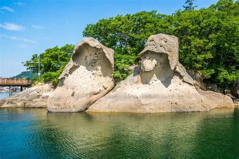 두 개의 바위가 마치 갓을 쓴 사람처럼 생긴 천연기념물이에요.
