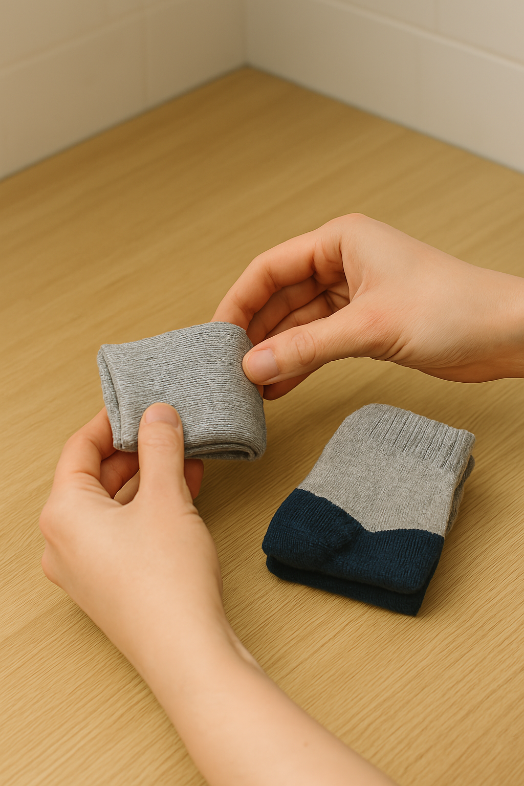 세탁이 끝난 후 양말을 건조하고, 말린 후에도 바로 짝을 맞춰 접는 습관이 중요해요.